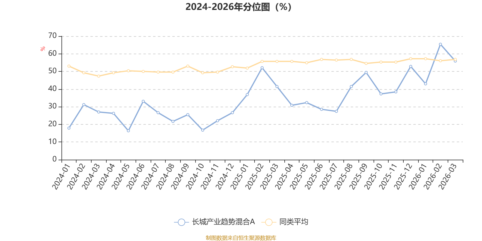 通过所选区间该基金净值增长率分位图,可以观察该基金与同类基金业绩比较情况。图为坐标原点到区间内某时点的净值增长率在同类基金中的分位数。