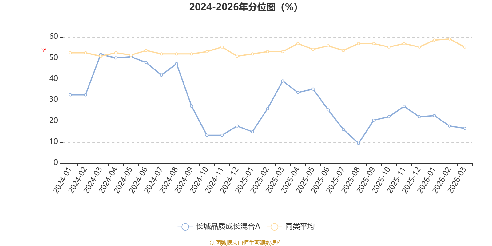 通过所选区间该基金净值增长率分位图,可以观察该基金与同类基金业绩比较情况。图为坐标原点到区间内某时点的净值增长率在同类基金中的分位数。