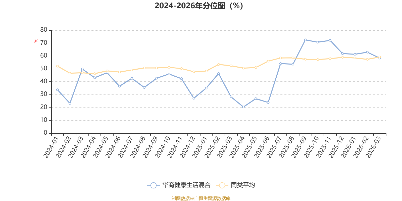 通过所选区间该基金净值增长率分位图,可以观察该基金与同类基金业绩比较情况。图为坐标原点到区间内某时点的净值增长率在同类基金中的分位数。