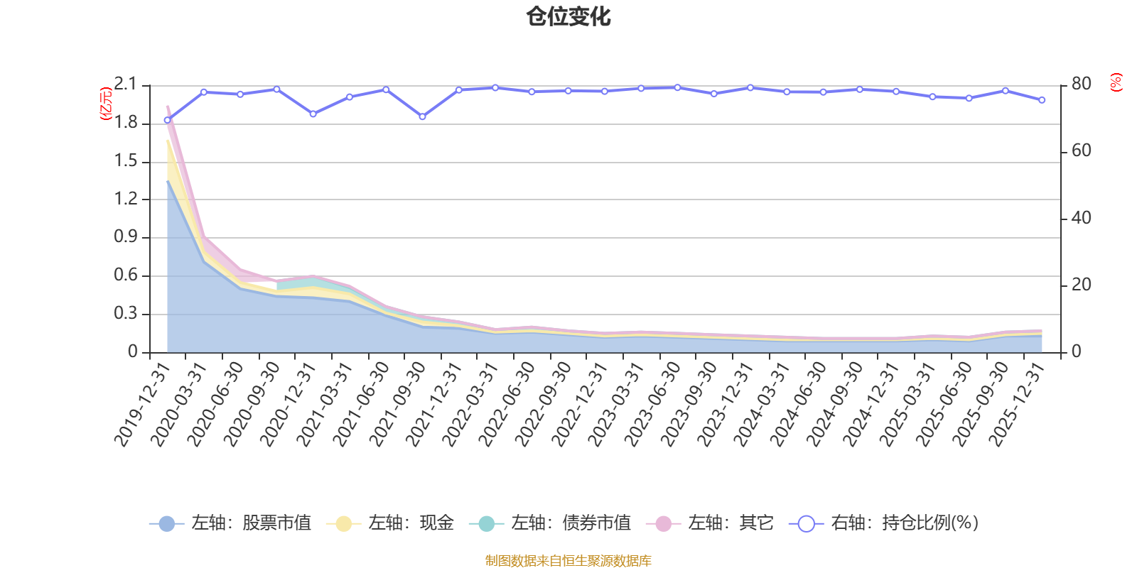 据定期报告数据统计,近三年平均股票仓位为77.88%,同类平均为72.57%。2023年上半年末基金达到79.32%的最高仓位,2019年末最低,为69.56%。
