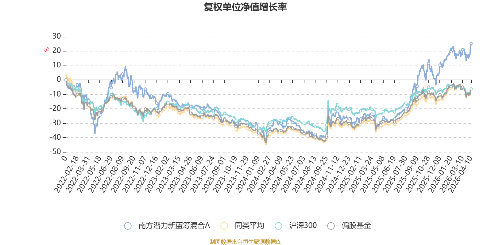 截至4月10日,南方潜力新蓝筹混合A近三个月复权单位净值增长率为5.52%,位于同类可比基金52/265;近半年复权单位净值增长率为17.64%,位于同类可比基金32/265;近一年复权单位净值增长率为85.85%,位于同类可比基金20/265;近三年复权单位净值增长率为50.42%,位于同类可比基金23/261。