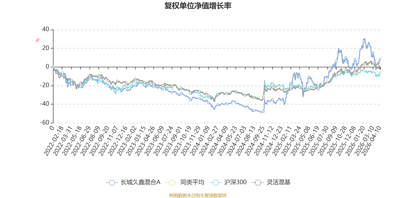 截至4月10日,长城久鑫混合A近三个月复权单位净值增长率为-11.59%,位于同类可比基金1220/1287;近半年复权单位净值增长率为-4.67%,位于同类可比基金1116/1286;近一年复权单位净值增长率为47.70%,位于同类可比基金386/1286;近三年复权单位净值增长率为34.26%,位于同类可比基金324/1286。