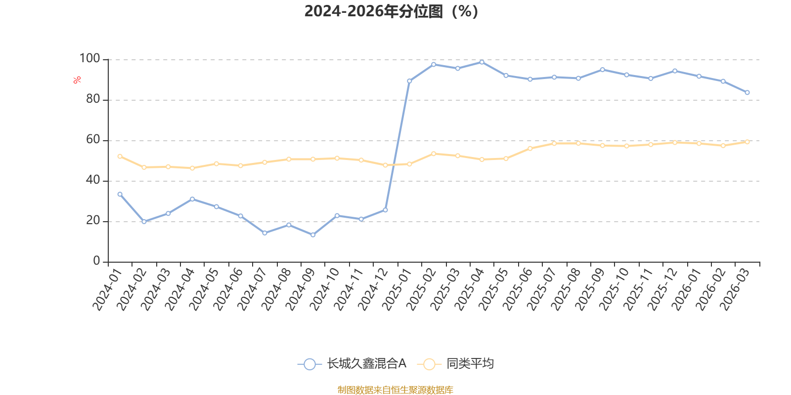 通过所选区间该基金净值增长率分位图,可以观察该基金与同类基金业绩比较情况。图为坐标原点到区间内某时点的净值增长率在同类基金中的分位数。