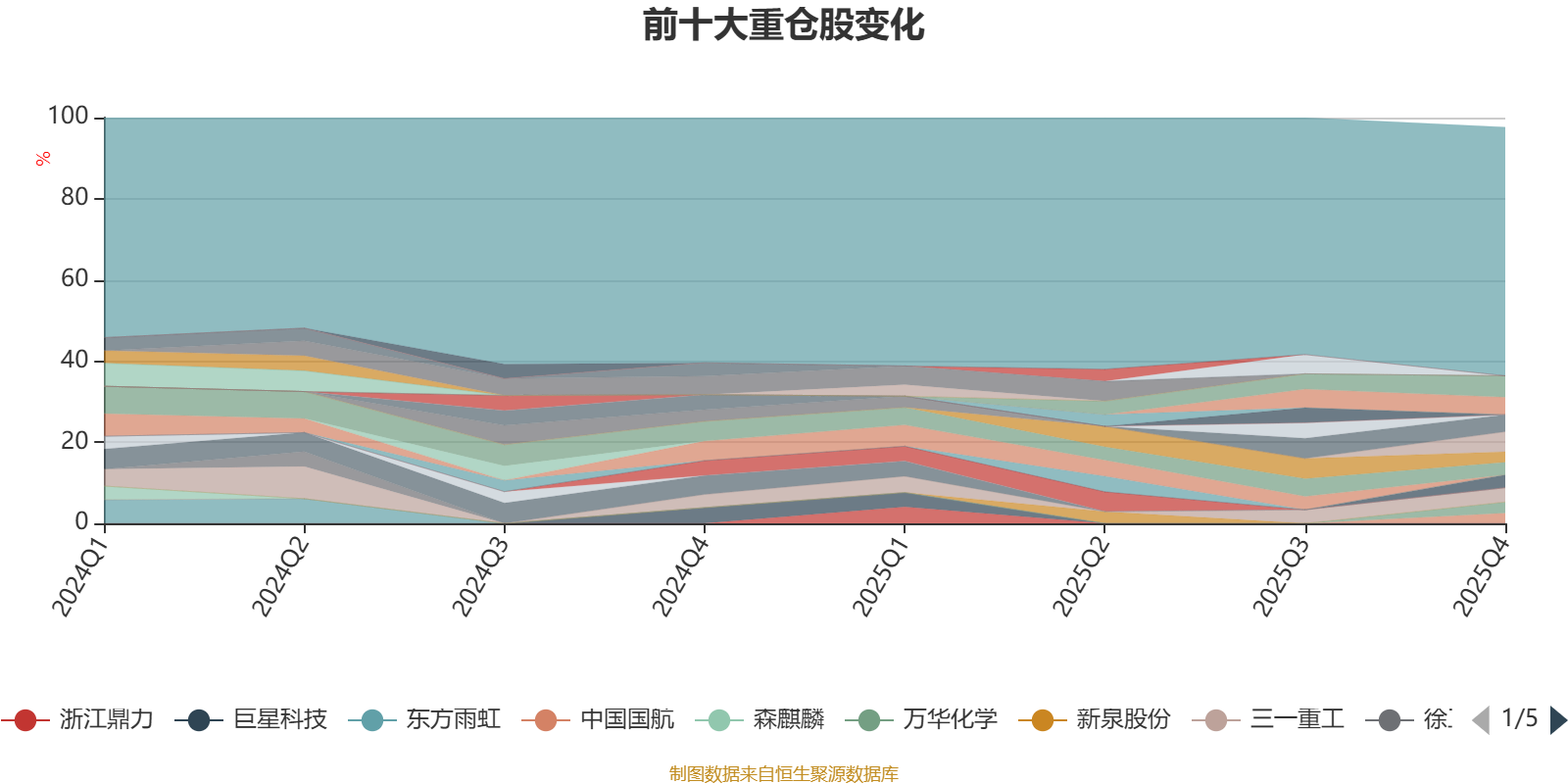 截至2025年末,基金十大重仓股分别是川仪股份、荣盛石化、太阳纸业、金域医学、三一重工、鲁西化工、欧派家居、万华化学、中国国航、晨光股份。