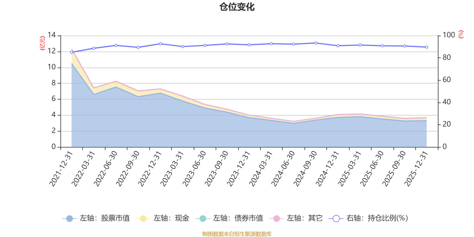 据定期报告数据统计,近三年平均股票仓位为91.45%,同类平均为85.83%。2024年三季度末基金达到93.33%的最高仓位,2021年末最低,为85%。