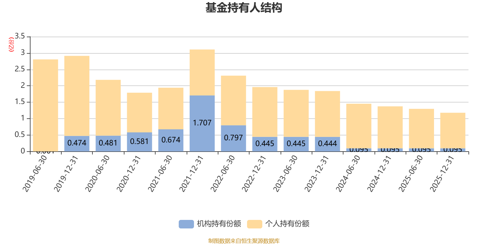 截至2025年12月31日,基金持有人共计3712户,合计持有1.18亿份。其中管理人员工持有112.75份,机构持有份额占比8.05%,个人投资者占比91.95%。