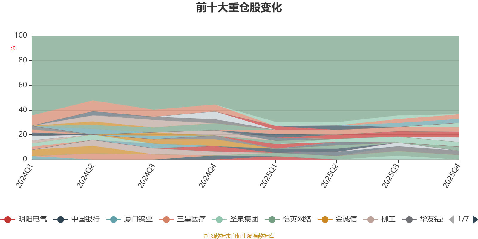 截至2025年末,基金十大重仓股分别是东睦股份、特锐德、紫金矿业、道通科技、科达利、恺英网络、科锐国际、华友钴业、睿创微纳、新华保险。