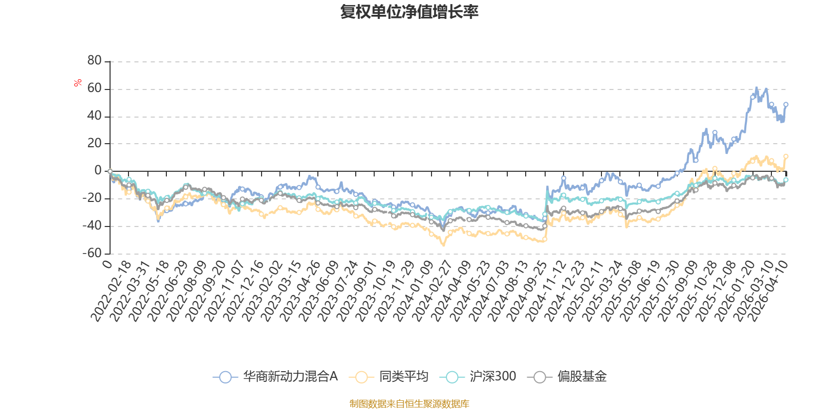 截至4月10日,华商新动力混合A近三个月复权单位净值增长率为4.14%,位于同类可比基金107/229;近半年复权单位净值增长率为17.85%,位于同类可比基金74/229;近一年复权单位净值增长率为72.78%,位于同类可比基金102/229;近三年复权单位净值增长率为57.34%,位于同类可比基金70/172。