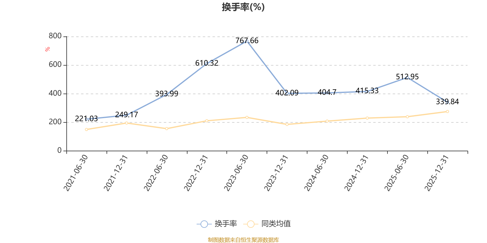 截至2025年12月31日,基金最近一年换手率约820.37%,持续高于同类均值。