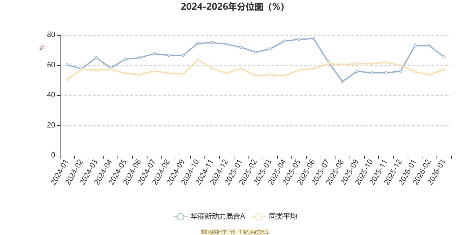通过所选区间该基金净值增长率分位图,可以观察该基金与同类基金业绩比较情况。图为坐标原点到区间内某时点的净值增长率在同类基金中的分位数。