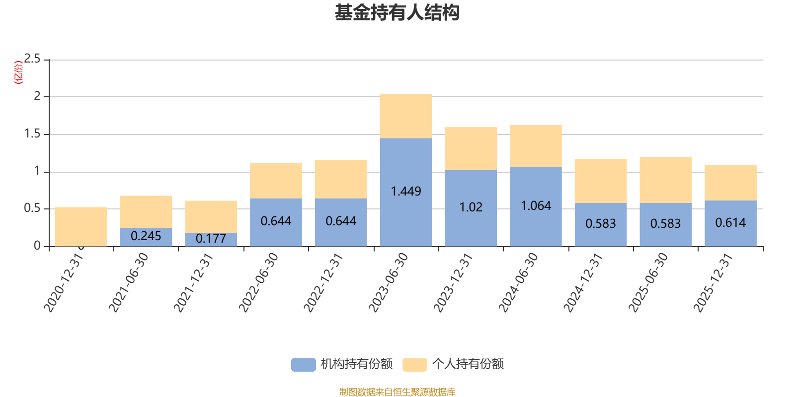 截至2025年12月31日,基金持有人共计5896户,合计持有1.09亿份。其中管理人员工持有97.07万份,占比0.89%,机构持有份额占比56.41%,个人投资者占比43.59%。