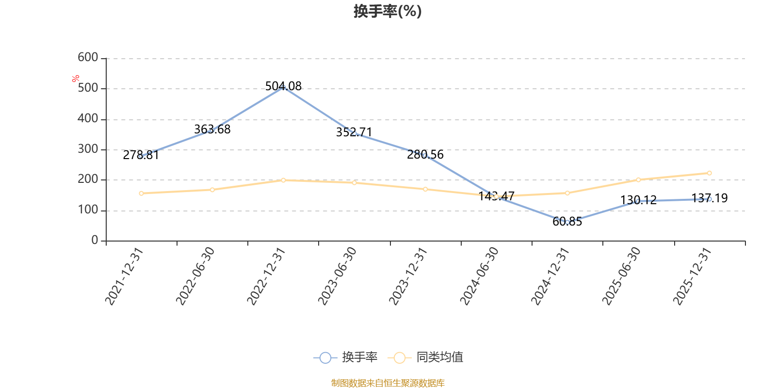 截至2025年12月31日,基金最近一年换手率约264.65%,持续2年低于同类均值。