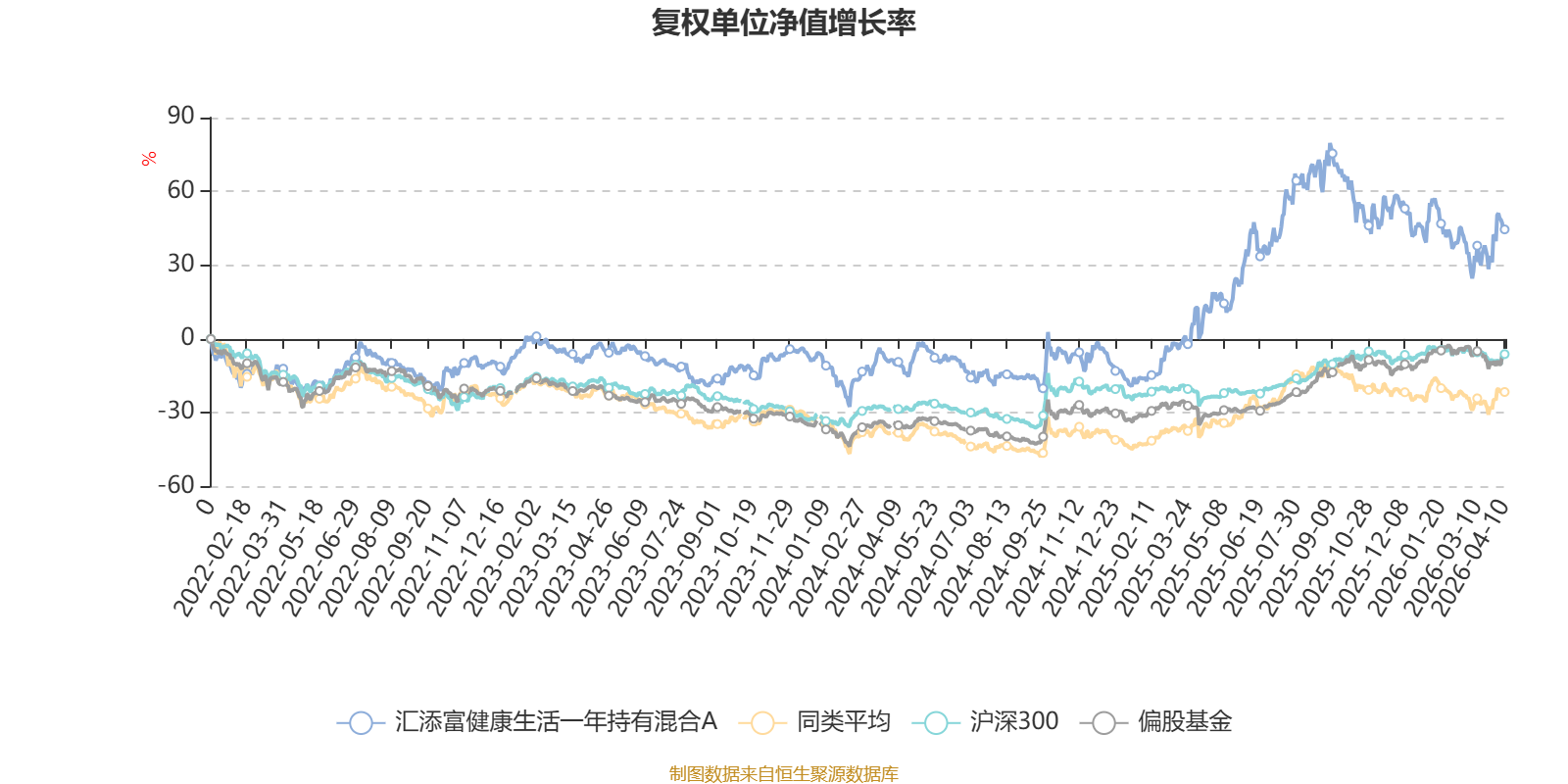 截至4月10日,汇添富健康生活一年持有混合A近三个月复权单位净值增长率为-7.94%,位于同类可比基金80/106;近半年复权单位净值增长率为-7.69%,位于同类可比基金65/106;近一年复权单位净值增长率为34.21%,位于同类可比基金22/104;近三年复权单位净值增长率为49.42%,位于同类可比基金2/78。