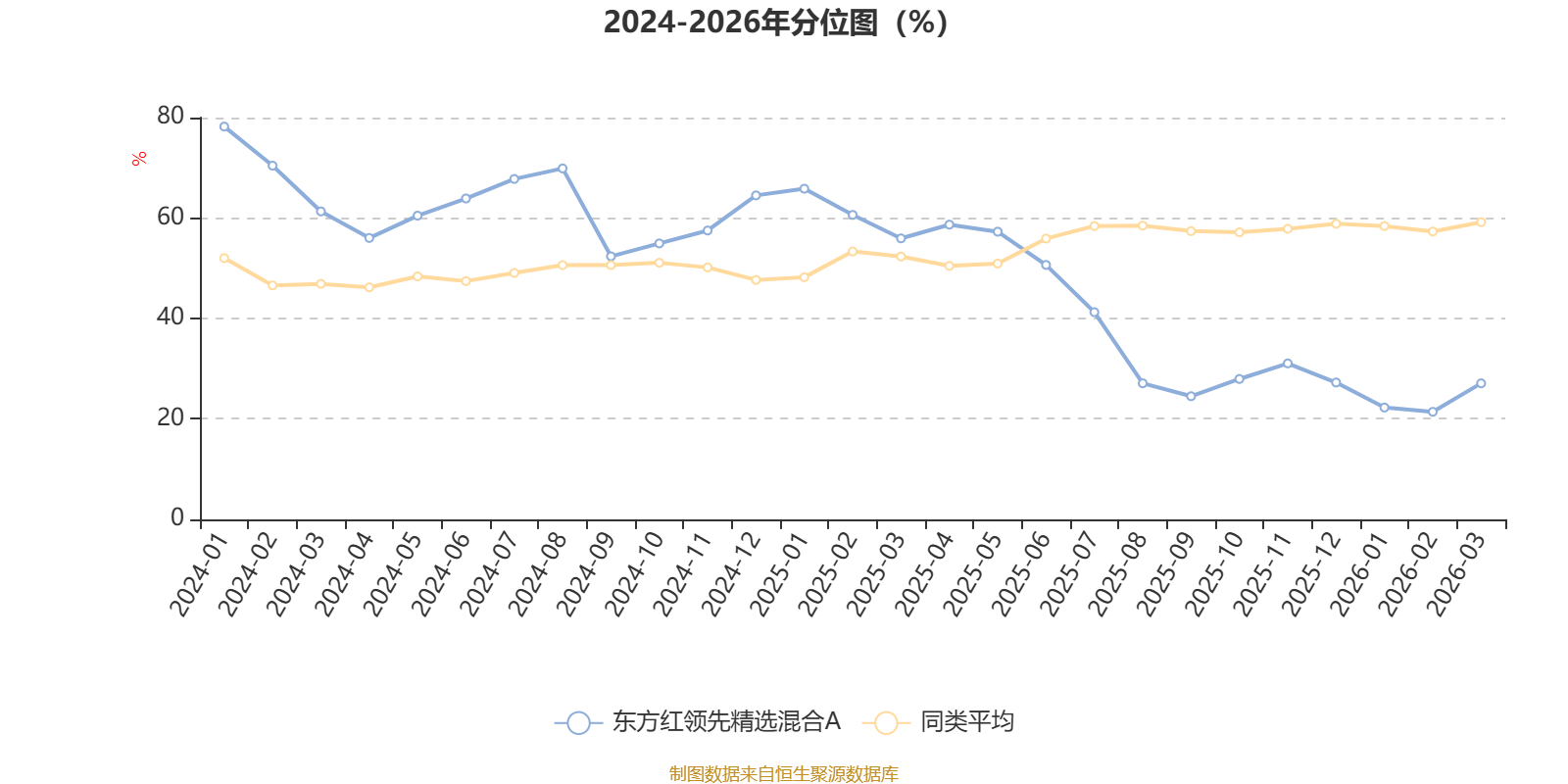 通过所选区间该基金净值增长率分位图,可以观察该基金与同类基金业绩比较情况。图为坐标原点到区间内某时点的净值增长率在同类基金中的分位数。