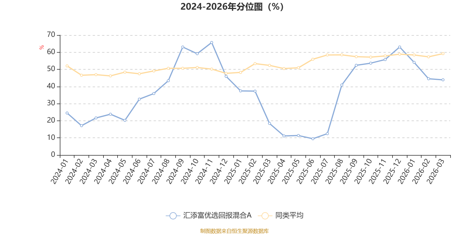 通过所选区间该基金净值增长率分位图,可以观察该基金与同类基金业绩比较情况。图为坐标原点到区间内某时点的净值增长率在同类基金中的分位数。
