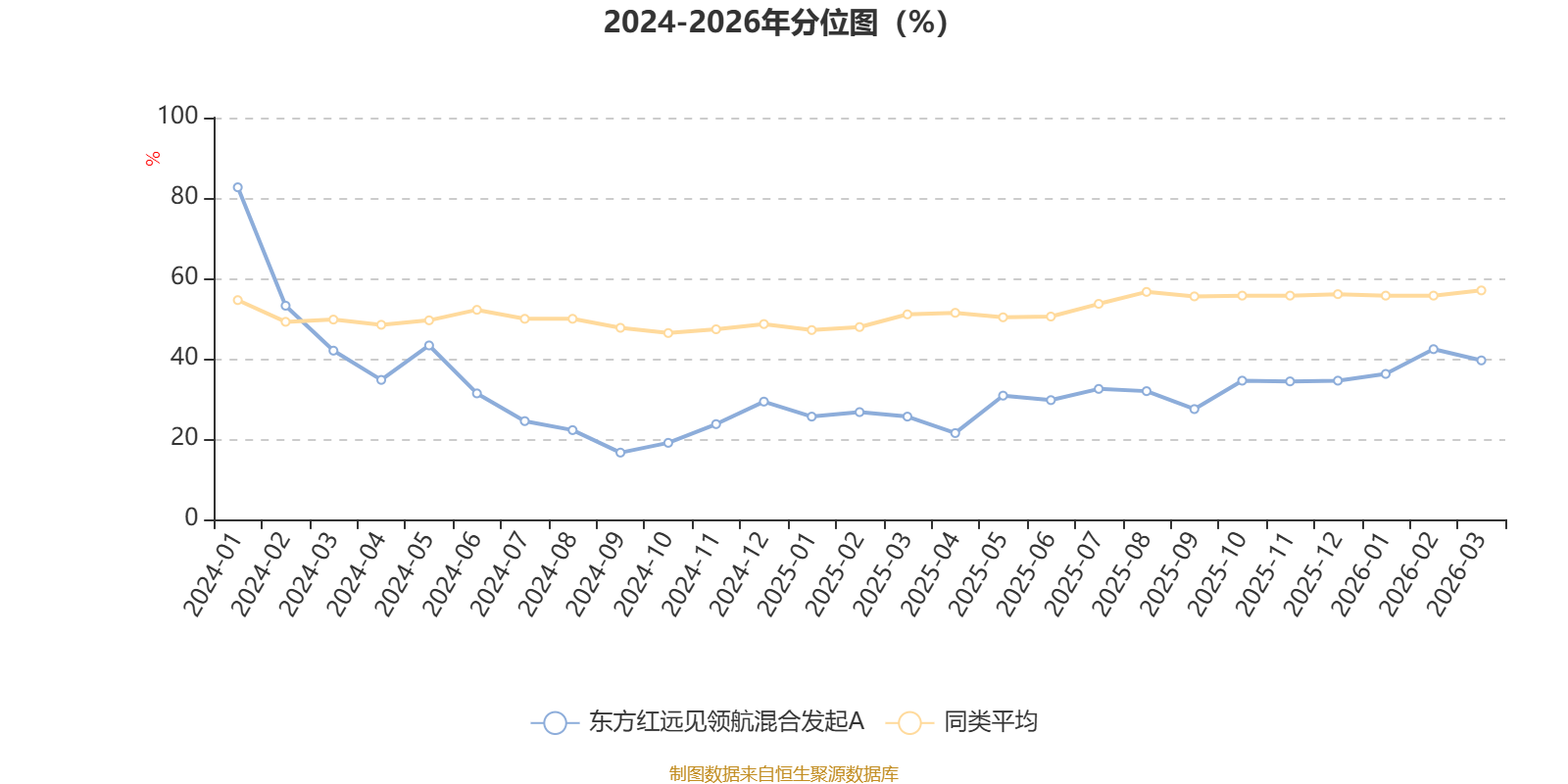 通过所选区间该基金净值增长率分位图,可以观察该基金与同类基金业绩比较情况。图为坐标原点到区间内某时点的净值增长率在同类基金中的分位数。