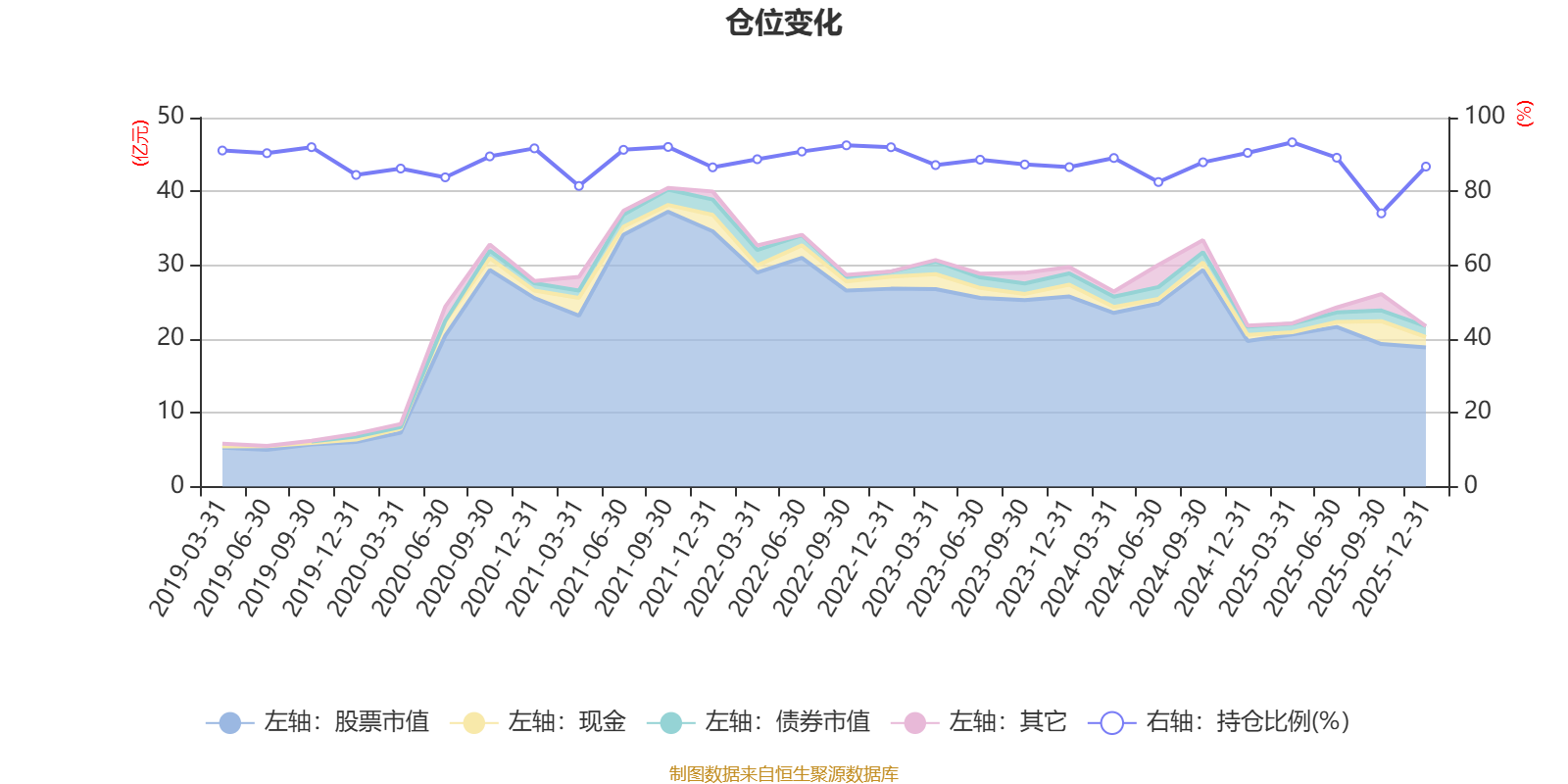 据定期报告数据统计,近三年平均股票仓位为86.89%,同类平均为72.57%。2025年一季度末基金达到93.3%的最高仓位,2025年三季度末最低,为74.05%。