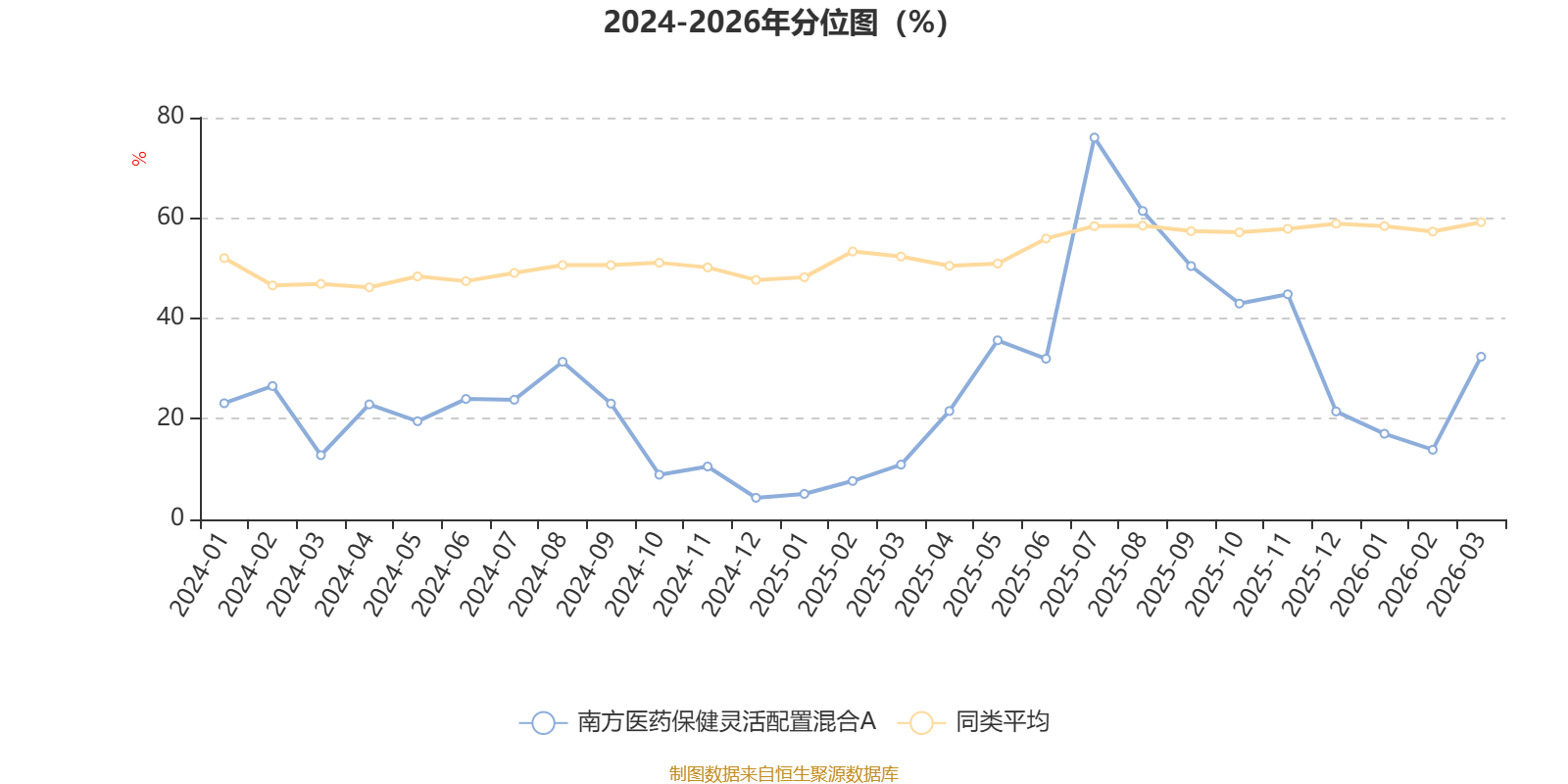 通过所选区间该基金净值增长率分位图,可以观察该基金与同类基金业绩比较情况。图为坐标原点到区间内某时点的净值增长率在同类基金中的分位数。