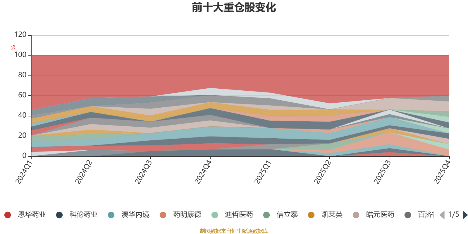 截至2025年末,基金十大重仓股分别是恒瑞医药、药明康德、海思科、百利天恒、热景生物、皓元医药、迪哲医药、苑东生物、泽璟制药、英科医疗。