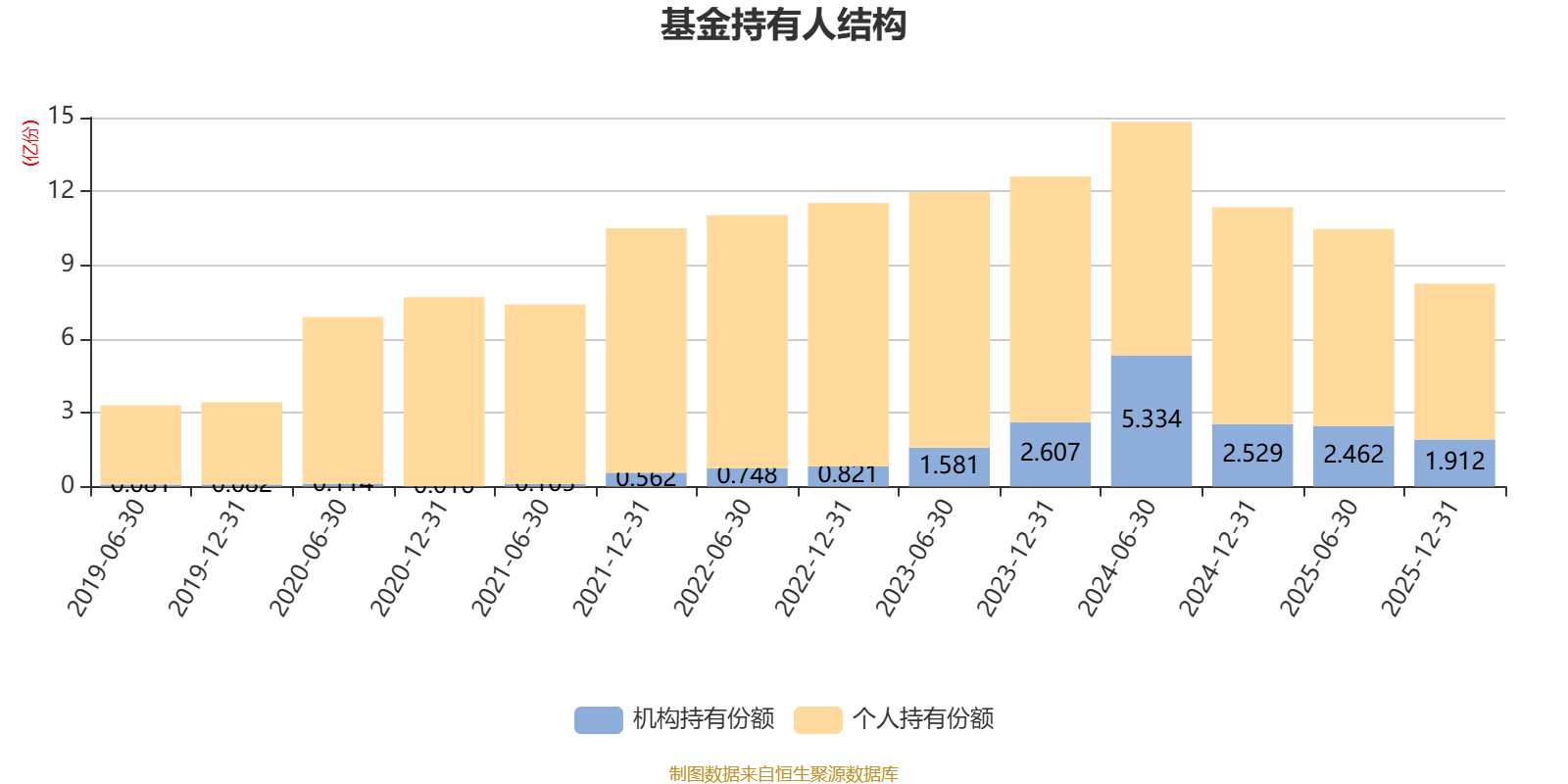 截至2025年12月31日,基金持有人共计16.04万户,合计持有8.24亿份。其中管理人员工持有73.88万份,占比0.09%,机构持有份额占比23.20%,个人投资者占比76.80%。