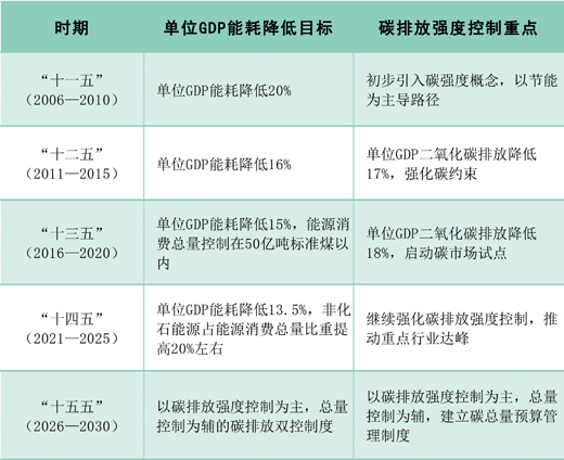 在“十五五”规划实施之前,我国降碳工作以能源总量管控为核心抓手,通过降低单位GDP能源消耗来推动碳减排。进入“十五五”时期后,降碳目标转向碳排放总量与强度“双控”,不再单纯聚焦能源总量和单位能耗控制,而是大力推广绿电替代化石能源,以此加速“双碳”目标的实现。