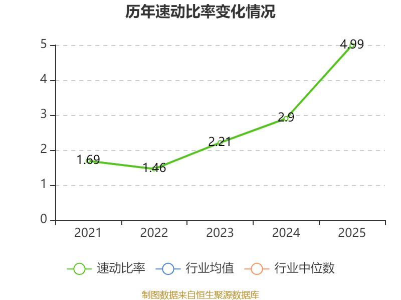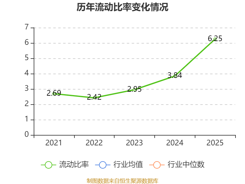 2025年,公司流动比率为6.25,速动比率为4.99。