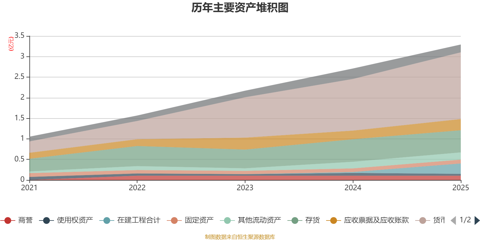 资产重大变化方面,截至2025年末,公司在建工程合计较上年末增加977.98%,占公司总资产比重上升6.83个百分点;存货较上年末减少1.83%,占公司总资产比重下降3.88个百分点;货币资金较上年末增加29.16%,占公司总资产比重上升2.91个百分点;其他非流动资产较上年末减少74.63%,占公司总资产比重下降1.5个百分点。