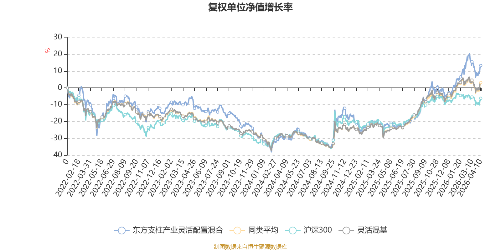 截至4月10日,东方支柱产业灵活配置混合近三个月复权单位净值增长率为7.64%,位于同类可比基金167/1287;近半年复权单位净值增长率为12.09%,位于同类可比基金281/1286;近一年复权单位净值增长率为46.23%,位于同类可比基金403/1286;近三年复权单位净值增长率为21.15%,位于同类可比基金508/1286。