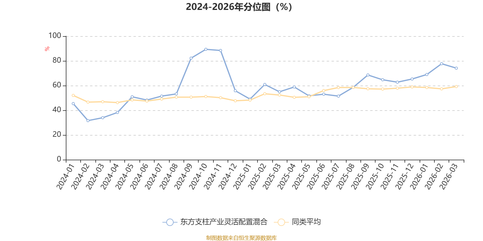 通过所选区间该基金净值增长率分位图,可以观察该基金与同类基金业绩比较情况。图为坐标原点到区间内某时点的净值增长率在同类基金中的分位数。