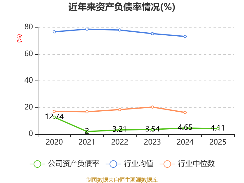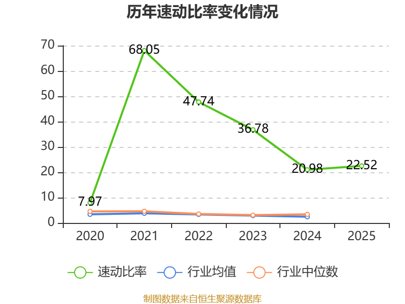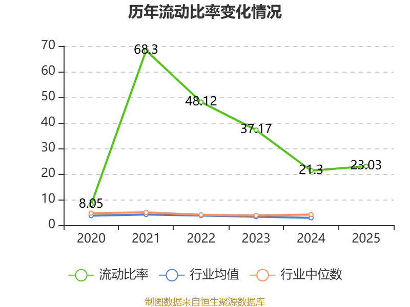 2025年,公司流动比率为23.03,速动比率为22.52。
