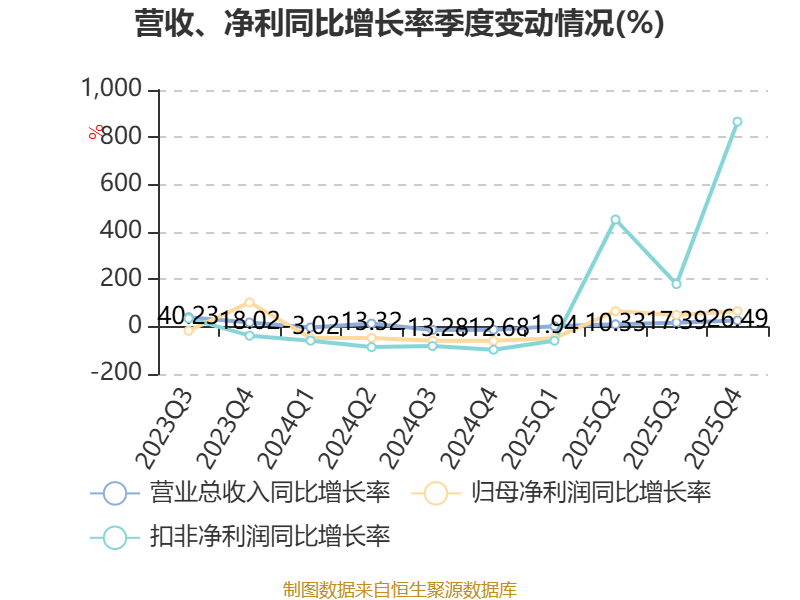资产重大变化方面,截至2025年末,公司交易性金融资产合计较上年末减少21.96%,占公司总资产比重下降9.06个百分点;其他非流动金融资产较上年末增加61.14%,占公司总资产比重上升2.88个百分点;货币资金较上年末增加38.12%,占公司总资产比重上升1.96个百分点;在建工程合计较上年末增加168.22%,占公司总资产比重上升1.42个百分点。
