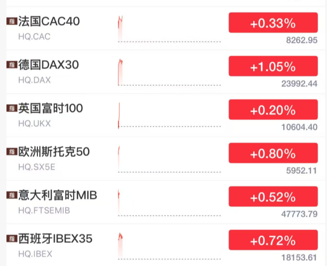 欧美股市集体拉升。