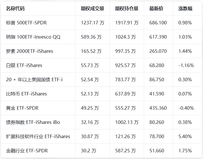 期权成交量排行榜