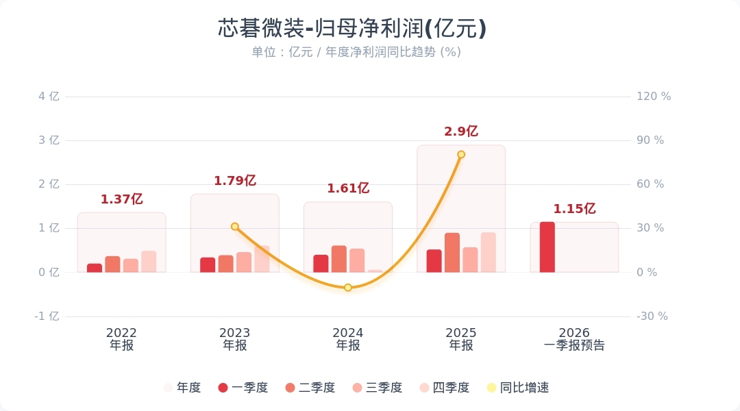 公告显示,芯碁微装预计2026年第一季度实现营业收入4.63亿元至5.4亿元,同比增长91.23%至123.11%;实现归母净利润为1.06亿元-1.24亿元,同比增加104.45%至138.53%。