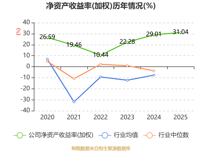 数据显示,2025年公司加权平均净资产收益率为31.04%,较上年同期上升2.03个百分点。公司2025年投入资本回报率为29.66%,较上年同期上升4.72个百分点。