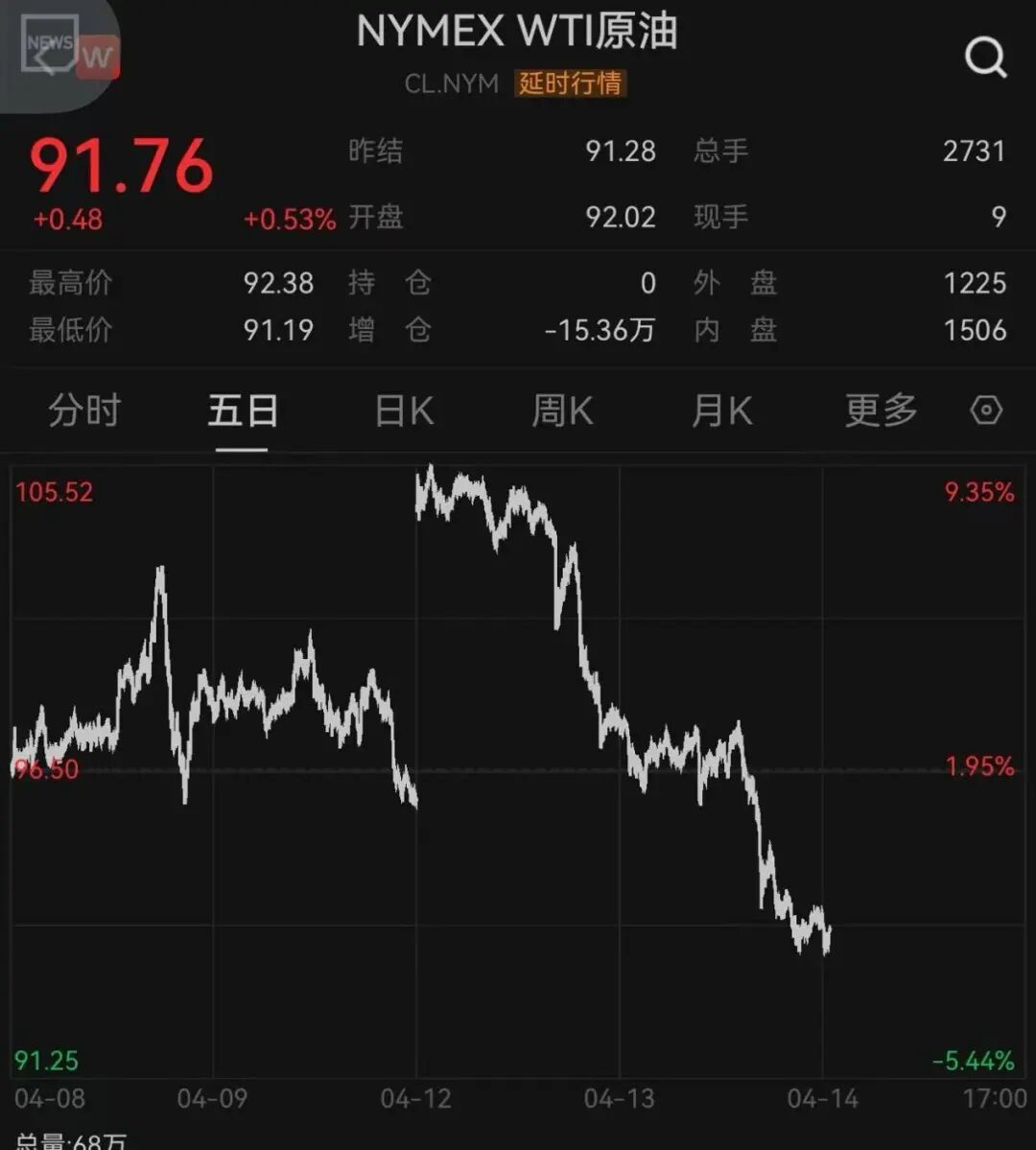 受谈判消息影响,NYMEX WTI原油期货下挫。截至发稿,位于90美元/桶上方。