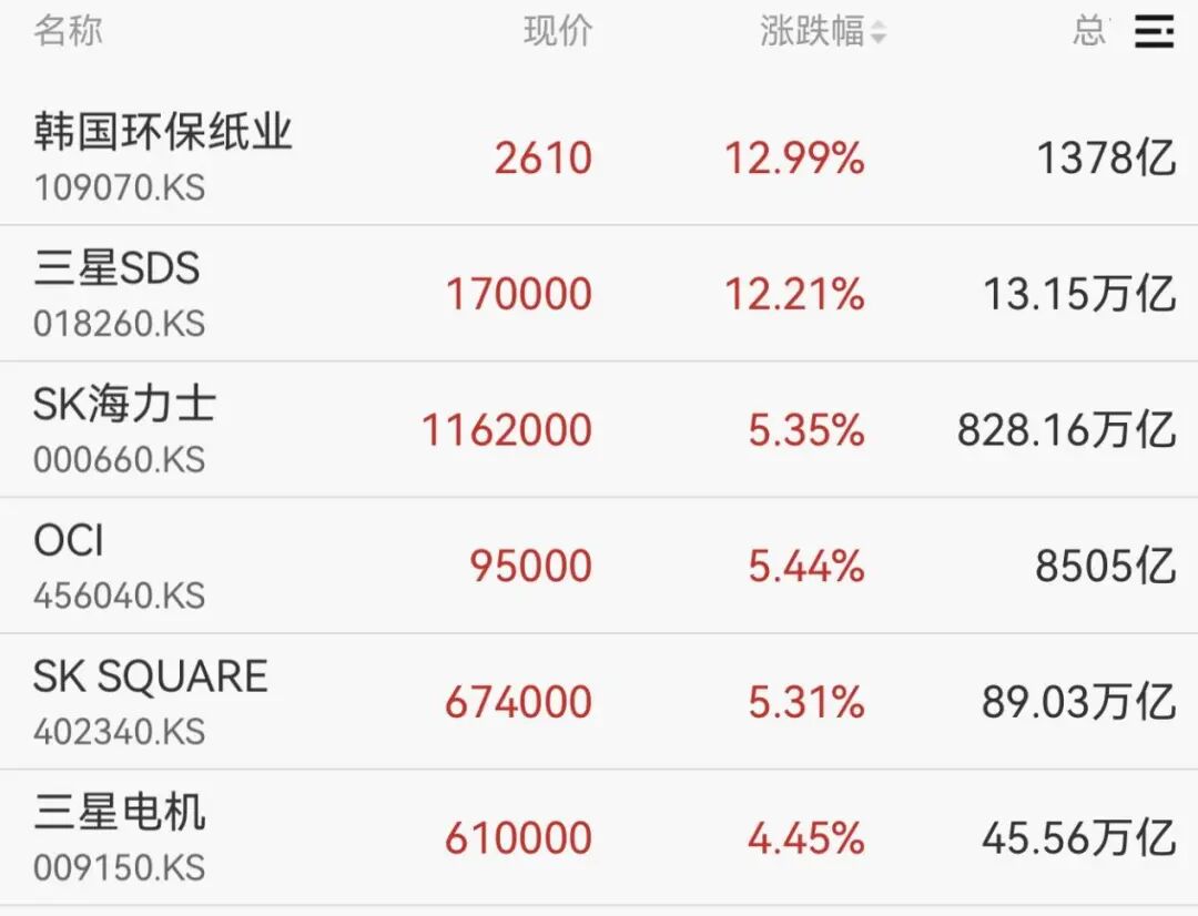 个股方面,SK海力士股价涨超5%,三星SDS股价涨超12%,创10个月以来最大涨幅。