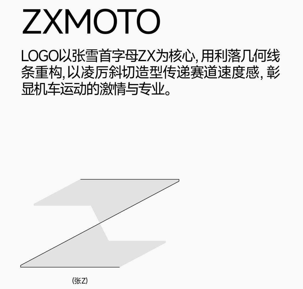 根据巴顿品牌设计的介绍,“LOGO以张雪首字母ZX为核心,用利落几何线条重构,以凌厉斜切造型传递赛道速度感,彰显机车运动的激情与专业。”“以精准28度与117度夹角为核心,极致打磨,用严谨几何比例塑造张雪机车标识的赛道速度感与专业质感。”