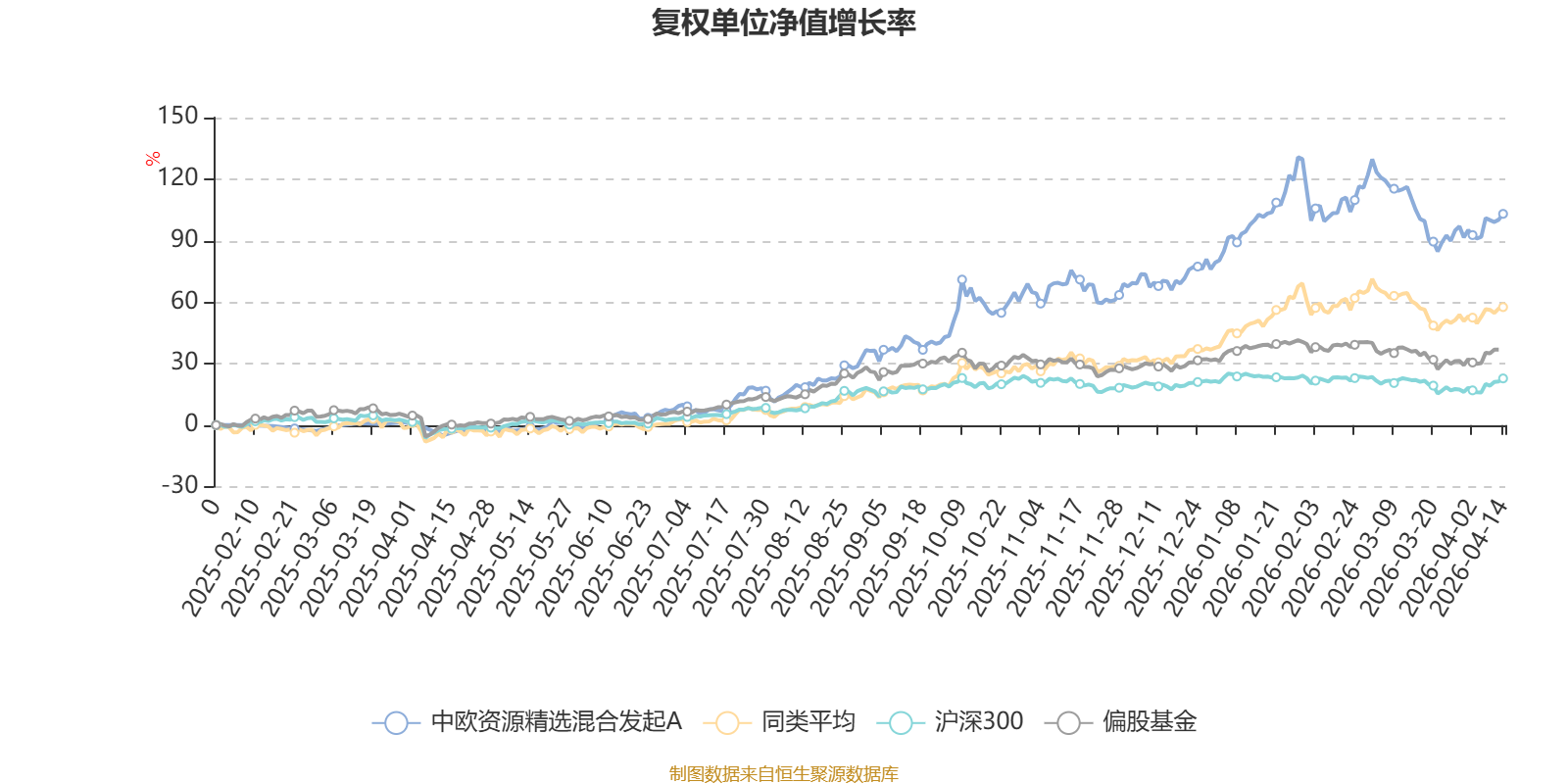 截至4月14日,中欧资源精选混合发起A近三个月复权单位净值增长率为1.61%,位于同类可比基金33/49;近半年复权单位净值增长率为26.45%,位于同类可比基金17/49;近一年复权单位净值增长率为113.93%,位于同类可比基金3/48。