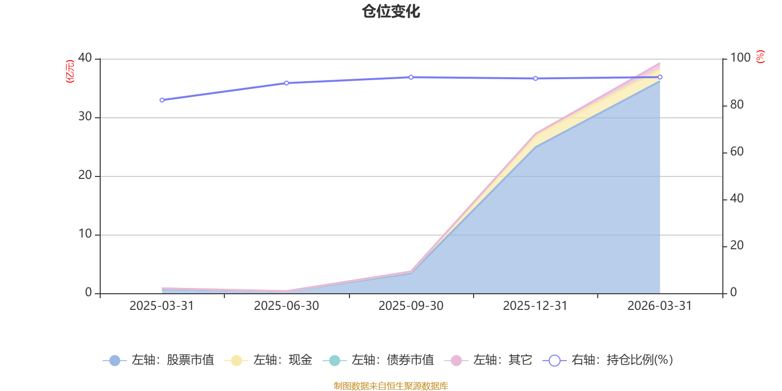 据定期报告数据统计,成立以来平均股票仓位为89.54%,同类平均为86.17%。2026年一季度末基金达到92.14%的最高仓位,2025年一季度末最低,为82.33%。