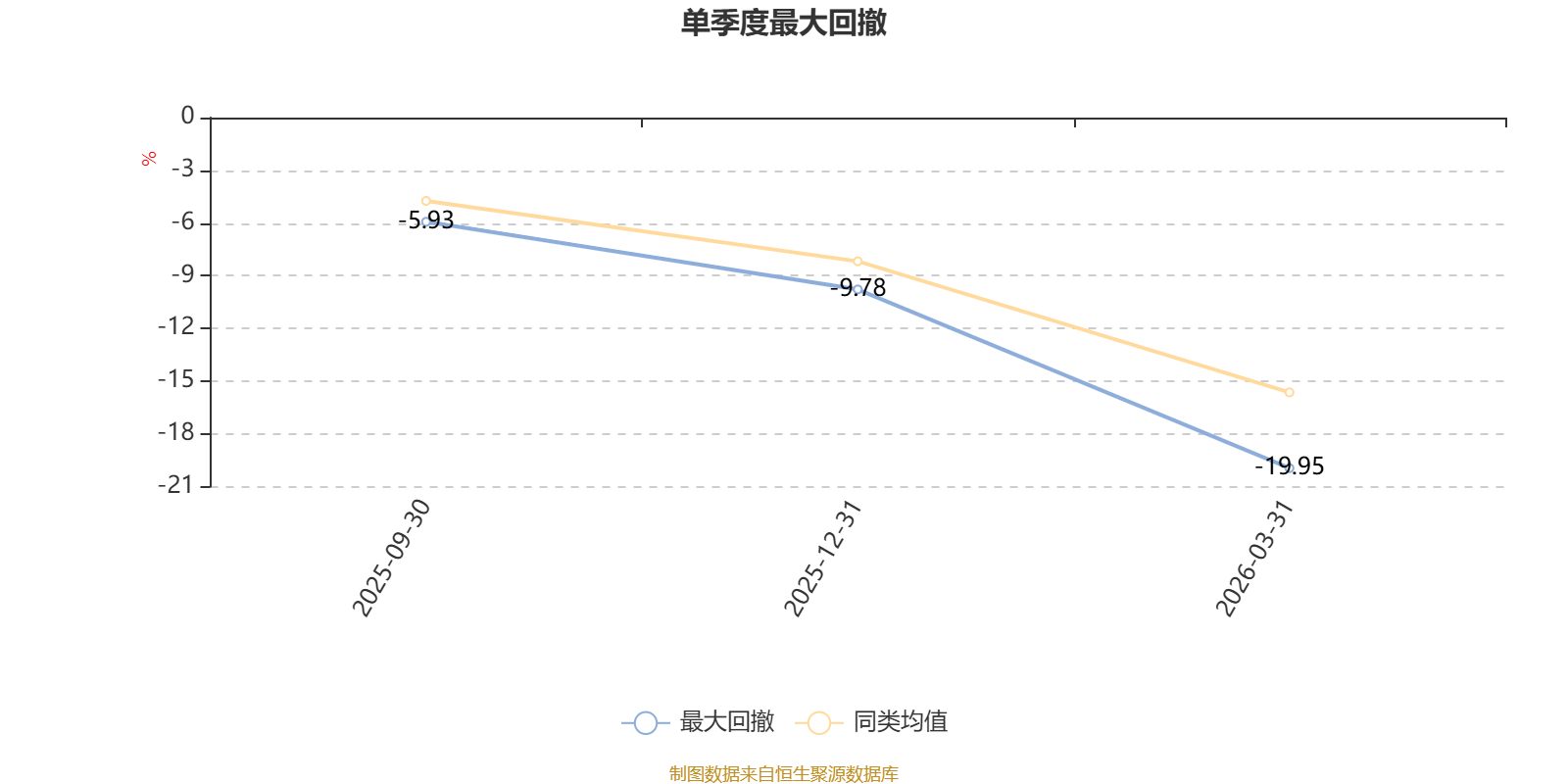截至4月14日,基金成立以来最大回撤为19.95%。单季度最大回撤出现在2026年一季度,为19.95%。
