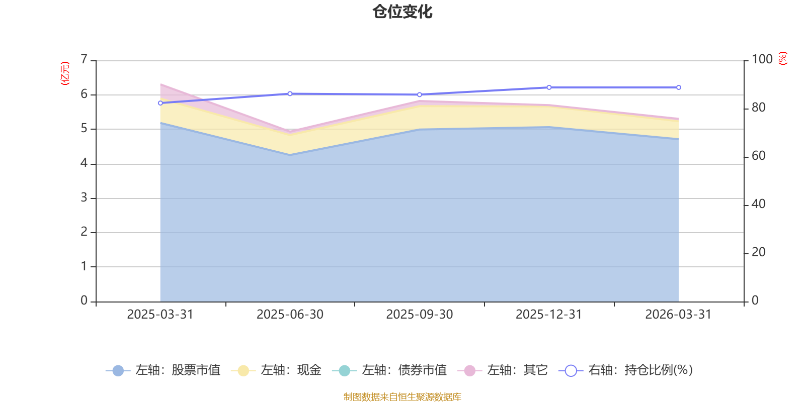 据定期报告数据统计,成立以来平均股票仓位为86.35%,同类平均为84.01%。2025年末基金达到88.77%的最高仓位,2025年一季度末最低,为82.28%。