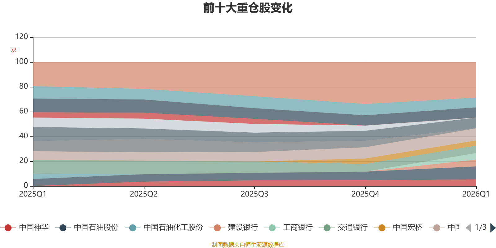该基金持股集中度较高,且持股标的较为稳定。截至2026年一季度末,基金十大重仓股分别是中国石油股份、中国海洋石油、中国银行、中信银行、中国移动、交通银行、建设银行、工商银行、中国神华、中国宏桥。
