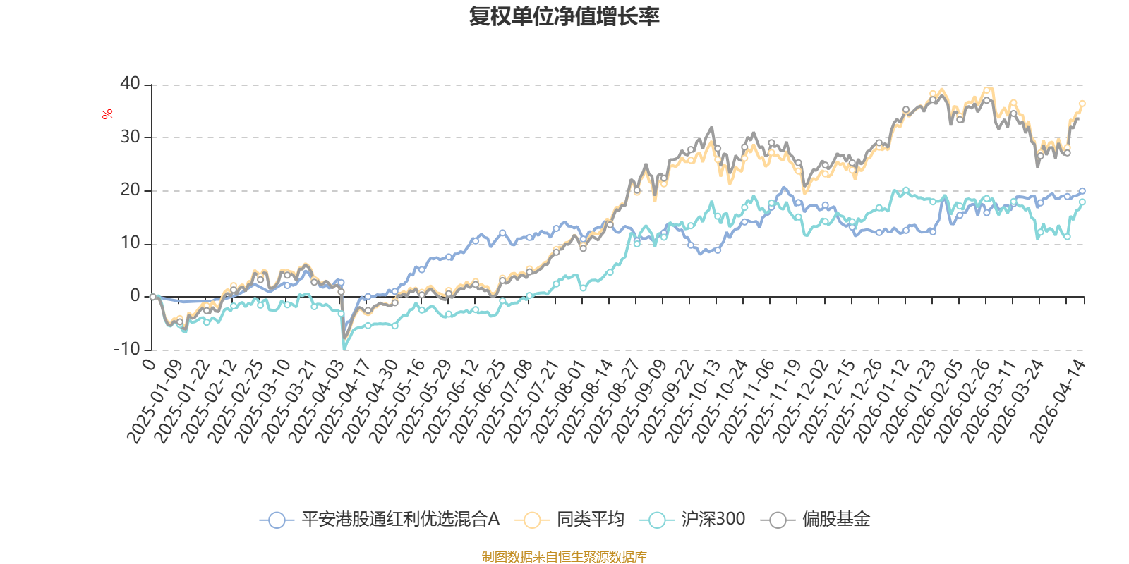 截至4月14日,平安港股通红利优选混合A近三个月复权单位净值增长率为5.78%,位于同类可比基金141/689;近半年复权单位净值增长率为9.47%,位于同类可比基金321/689;近一年复权单位净值增长率为20.74%,位于同类可比基金490/685。
