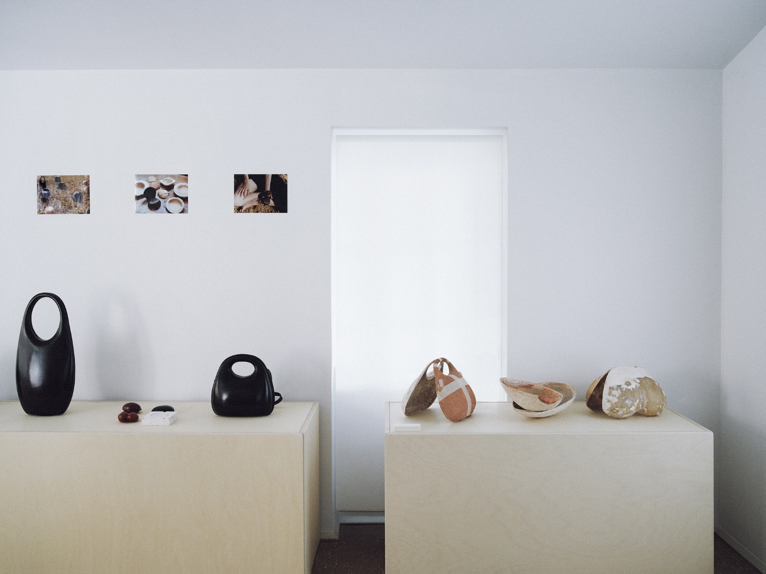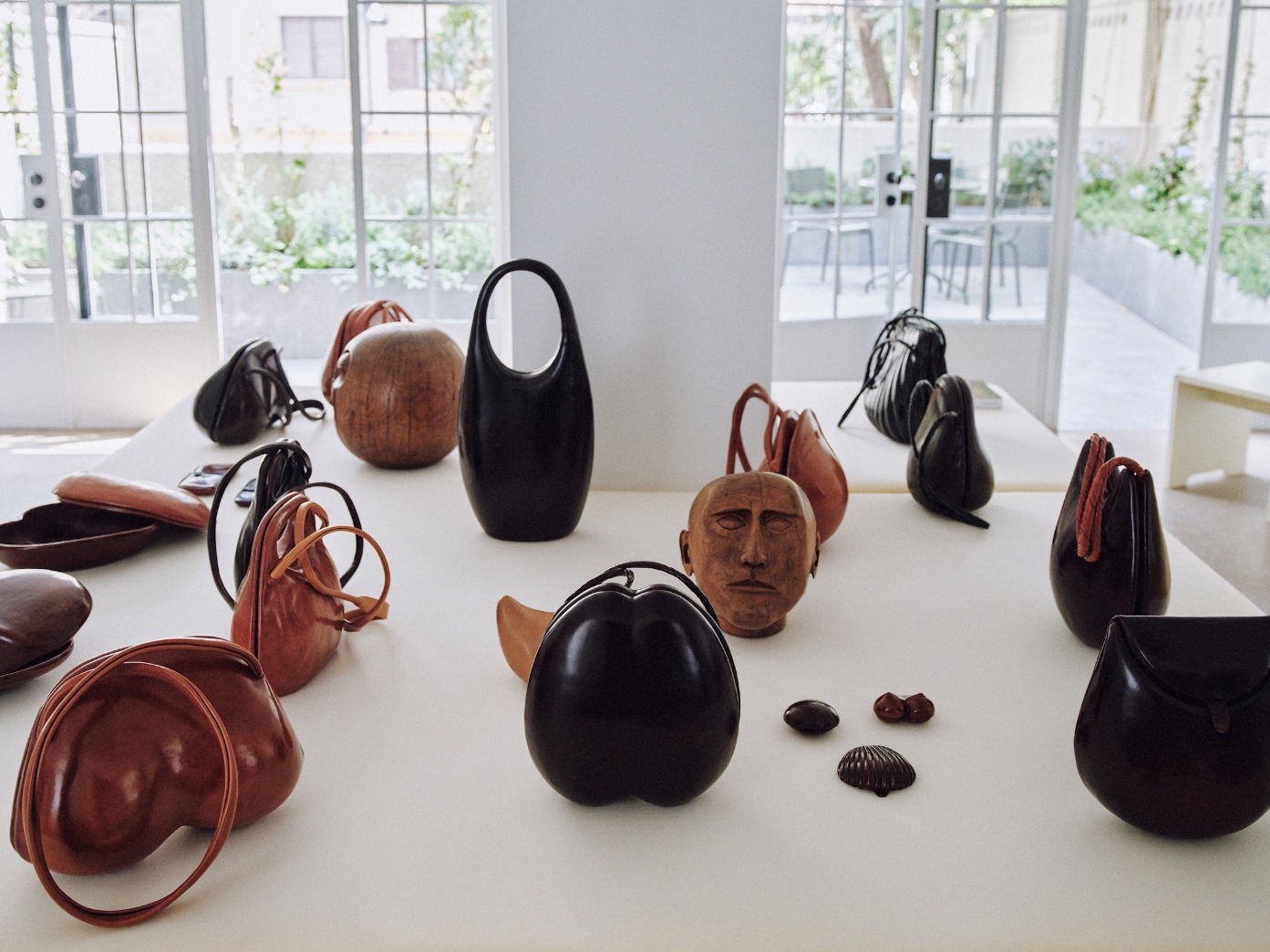 一组手工雕塑作品构成了此次展陈的核心,整体呈现出感性而自由的气质。这些手工制作的作品游走于潜意识与想象之间,将正形与负形、帽子与面具、包袋与手袋、过去与当下的意象并置,彼此交织,没有明确界限。