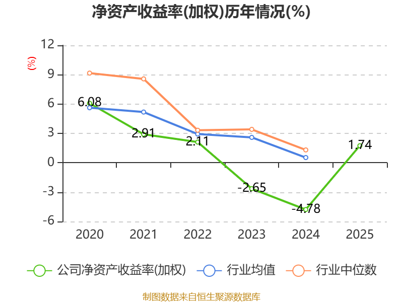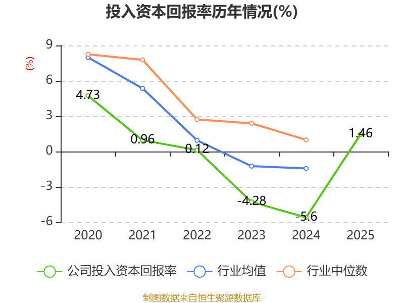 数据显示,2025年公司加权平均净资产收益率为1.74%,较上年同期上升6.52个百分点。公司2025年投入资本回报率为1.46%,较上年同期上升7.06个百分点。