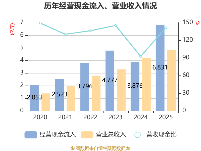 截至2025年,公司经营活动现金流净额为1.38亿元,同比增加1.84亿元;筹资活动现金流净额249.61万元,同比增加6177.41万元;投资活动现金流净额-2亿元,上年同期为-1.09亿元。