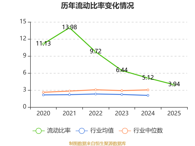 2025年,公司流动比率为3.94,速动比率为3.76。