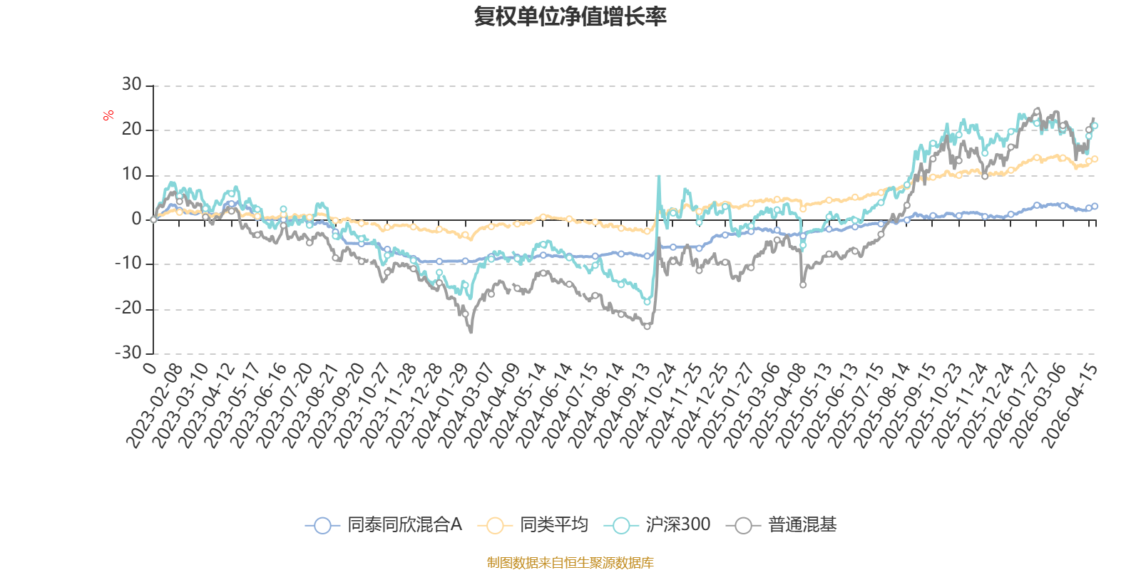 截至4月15日,同泰同欣混合A近三个月复权单位净值增长率为0.69%,位于同类可比基金208/629;近半年复权单位净值增长率为1.60%,位于同类可比基金343/629;近一年复权单位净值增长率为5.91%,位于同类可比基金383/629;近三年复权单位净值增长率为-0.17%,位于同类可比基金550/581。