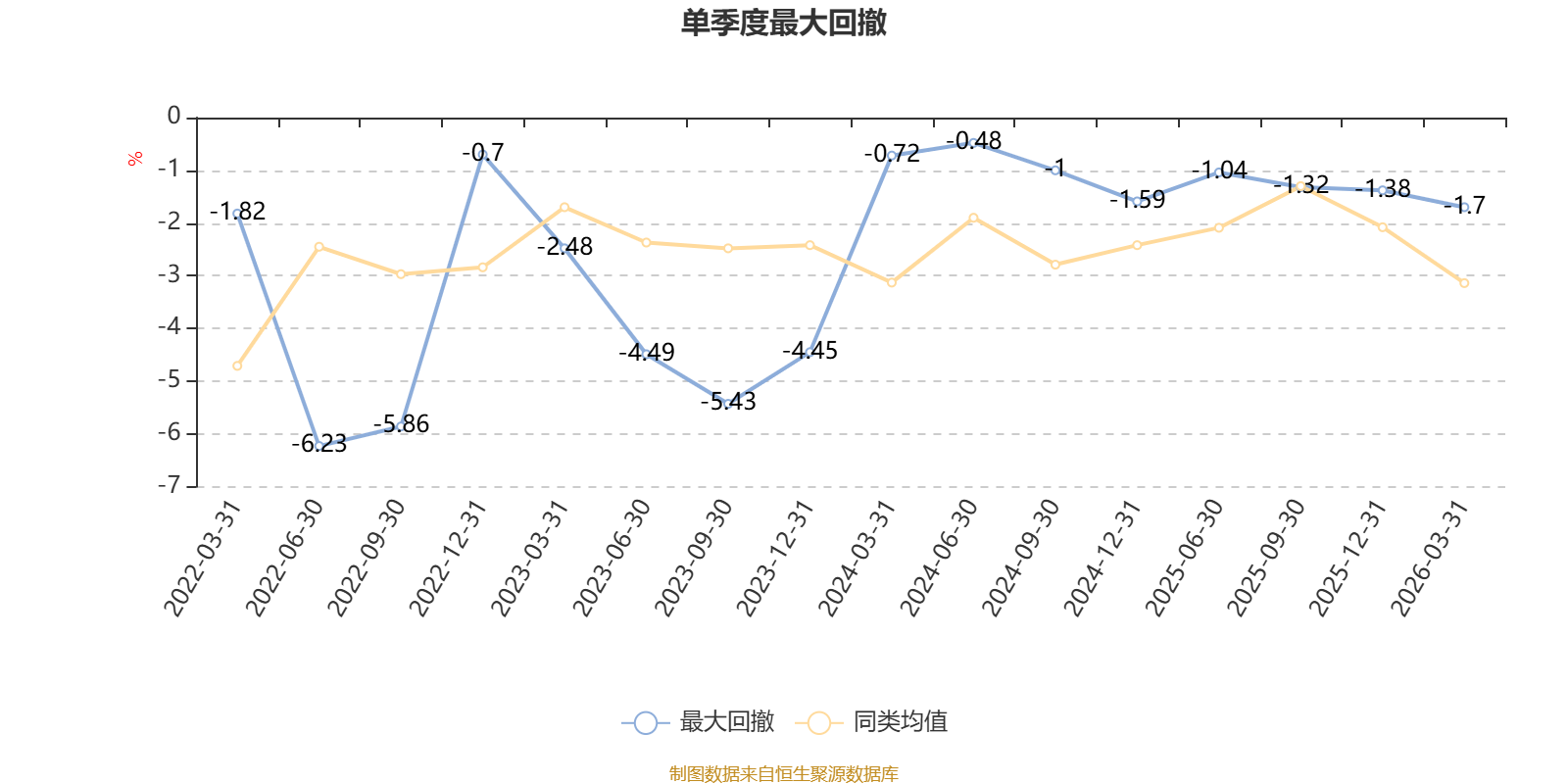 截至4月15日,基金近三年最大回撤为13.19%,同类可比基金排名477/534。单季度最大回撤出现在2022年二季度,为6.23%。